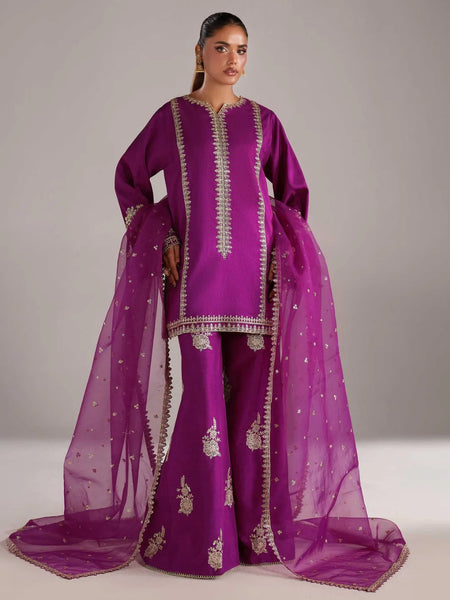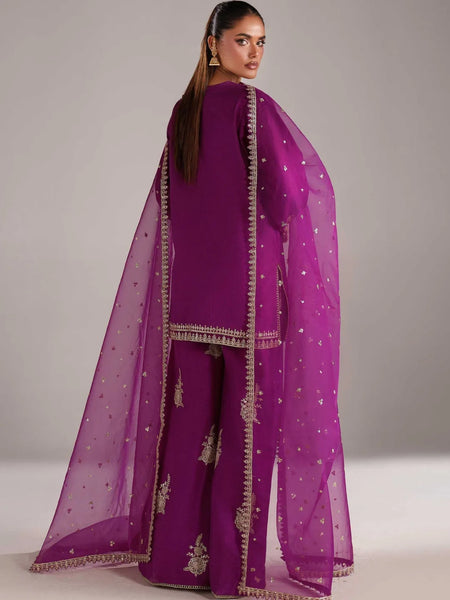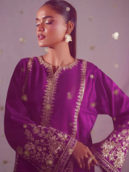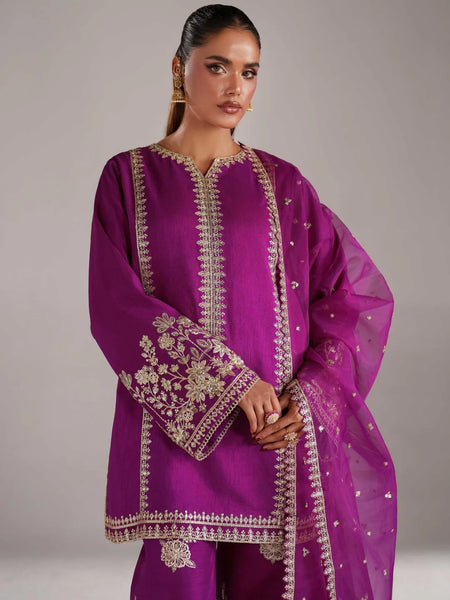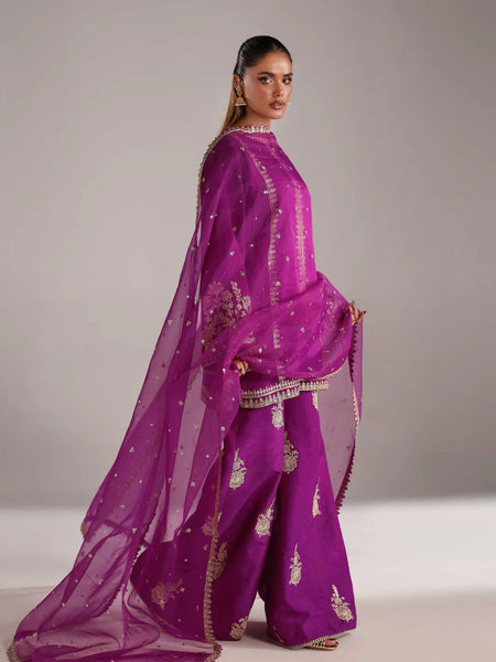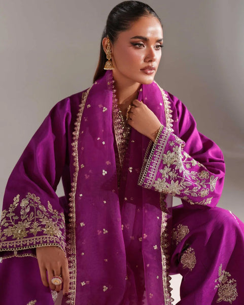 It's unstitched Stitched 3-piece korean sik tilla sequence embroidery work dress with daimond organza tilla sequence embroidery work dupatta as well