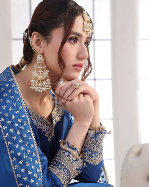 Its unstitched/Stitched 4-piece premium kataan silk, sequence embroidery & tilla work shirt & trouser, with daimond organza sequence embroidery & tilla work dupatta as well