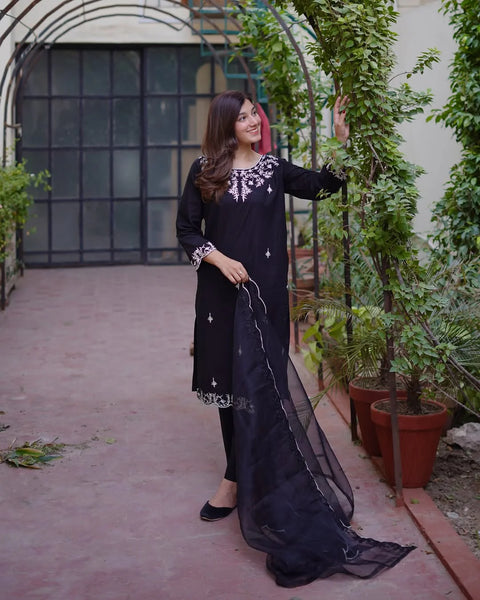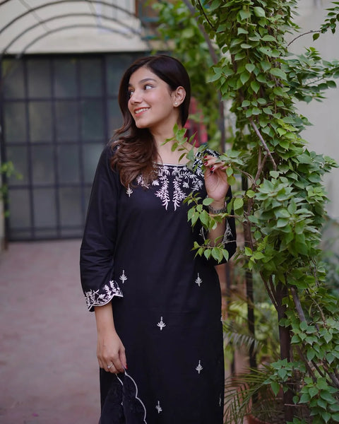 "A timeless black ladies' suit featuring a tailored fit, elegant design, and premium fabric—perfect for formal events, office wear, or special occasions