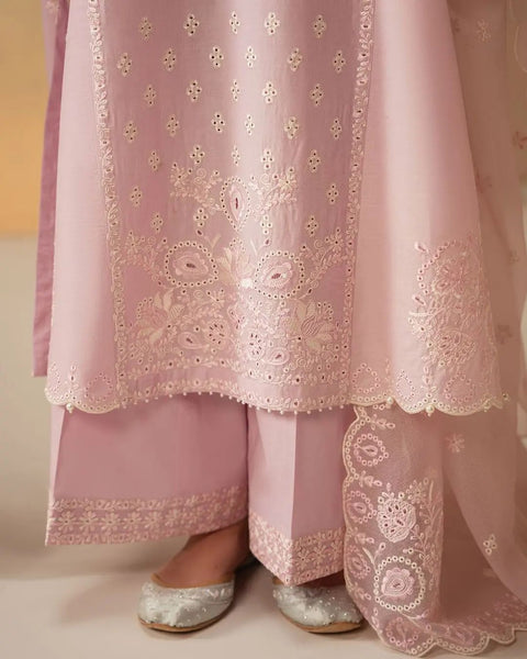Discover elegance with this long-length 3-piece unstitched lawn ensemble. The intricate embroidery on the lawn fabric is enhanced by the stunning net embroidered dupatta, creating a look that's both graceful and stylish. Perfect for making a statement, this dress is designed to elevate your fashion game.