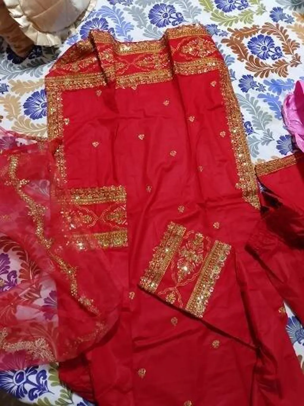 It's unstitched/Stitched 3pc Premium tilla embroidery and sequence work dress with daimond organza embroidery and sequence work dupatta as well