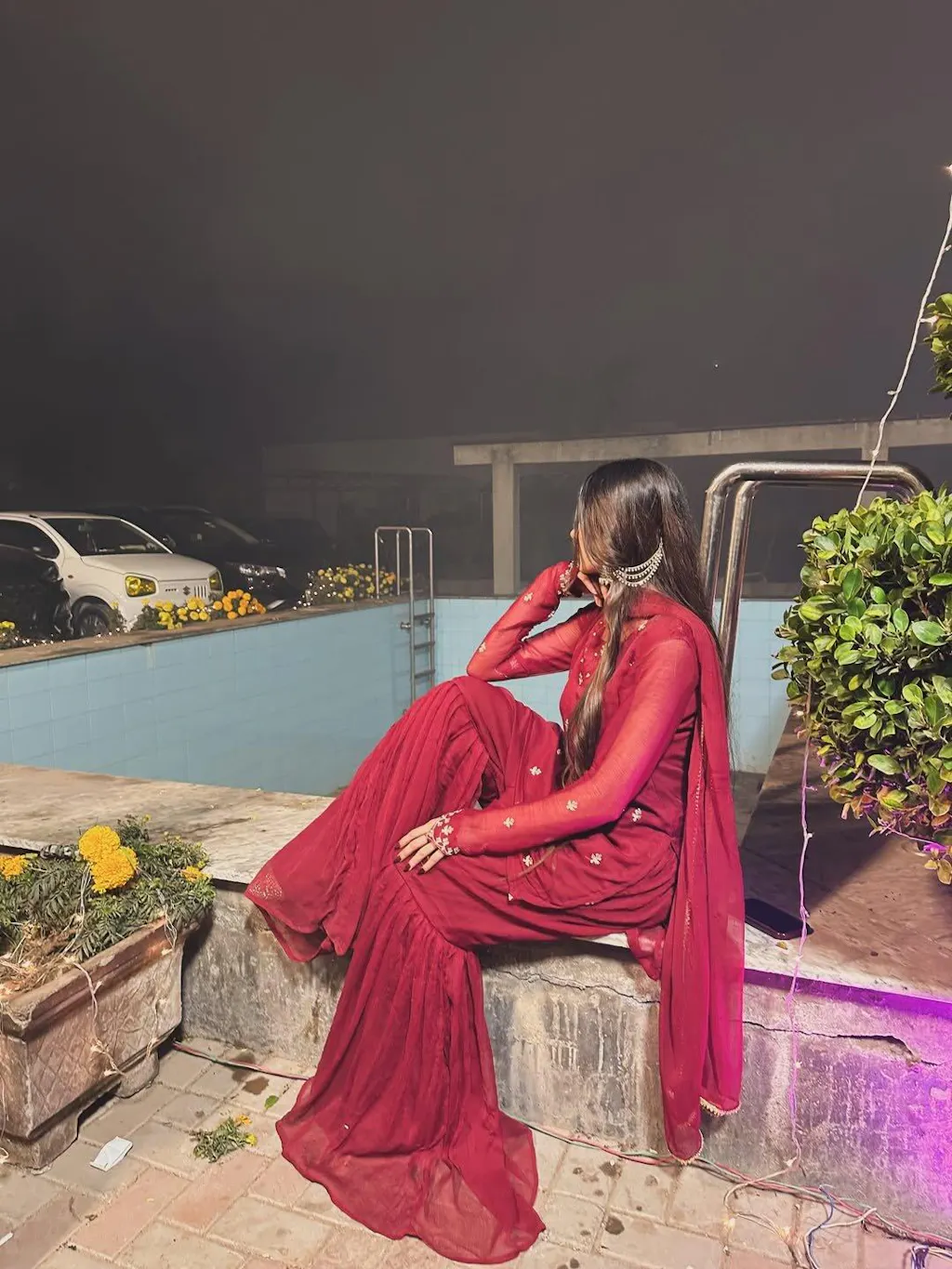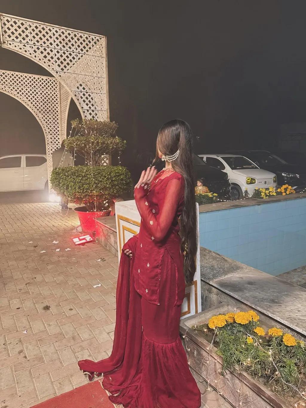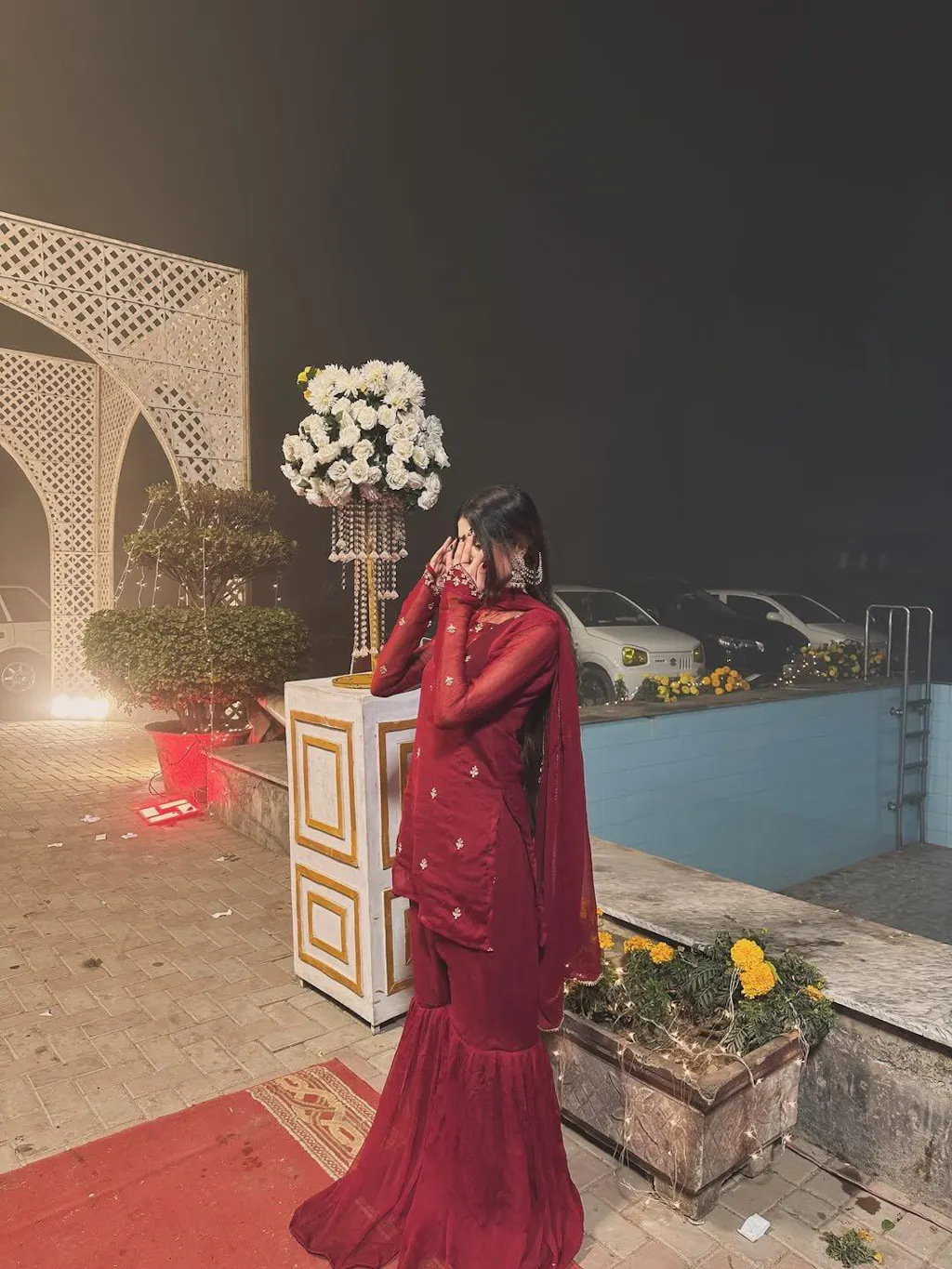 Mehro – 4-piece premium bamber chiffon set with embroidered shirt , Trouser , paired with same bamber chiffon embroidered dupatta & inner are included as well. Perfect for festive occasions